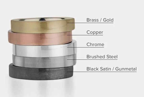 Chrome – Timeless, clean, and widely available. Chrome works with almost any design and is often the go-to for minimalist or classic spaces.