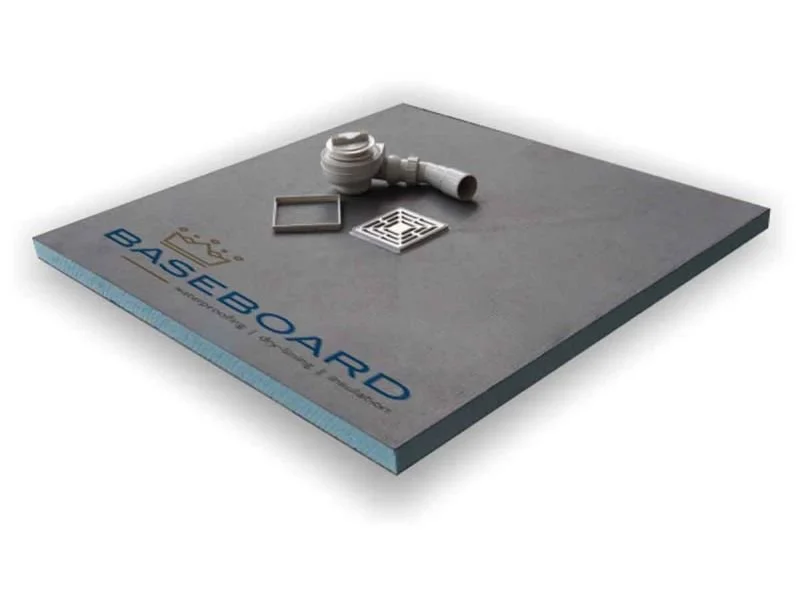 Baseboard Trays are specially designed waterproofing trays that are tiled directly onto the surface. These trays come with a prebuilt fall, ensuring proper drainage, and feature traps that are already installed onto the waterproof tray. This design makes the installation process much easier for contractors and provides a more reliable and efficient solution. They are especially beneficial in situations where the wetroom is located above the ground floor, making these installs a more desirable choice for many contractors due to their practicality and dependability. They also have the options of linear and square traps and can be tiled using mosaic or the larger floor tile. The contractor would then typically use Baseboard sheets to waterproof the rest of the floor.